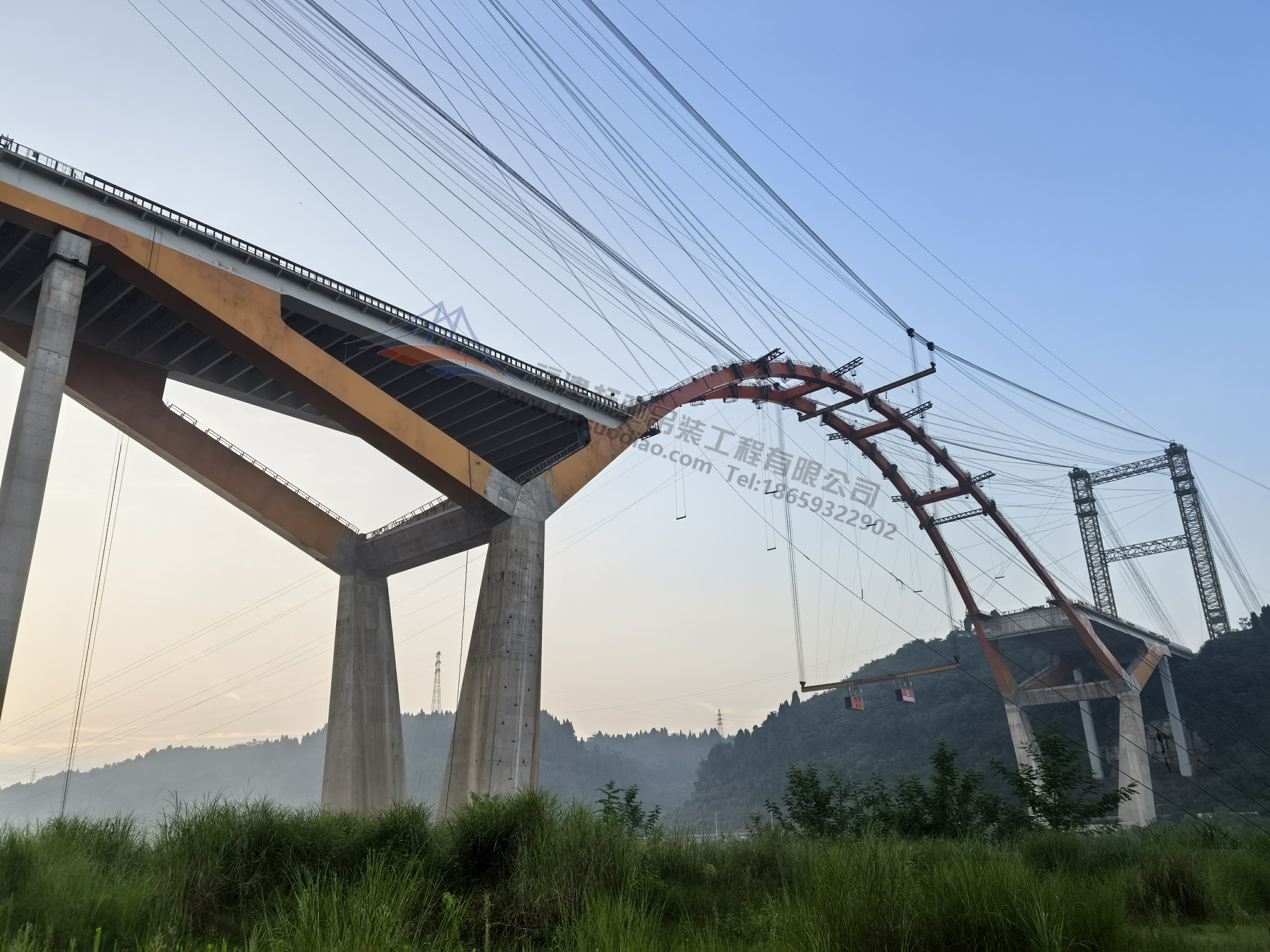特点:塔架高度165m。高墩系杆提篮拱桥,施工难度大,Y构部分也采用悬拼扣挂施工
